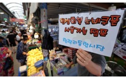 민생회복 소비쿠폰 지급 이후 첫 주말인 27일 서울 동대문구 청량리종합시장의 한 점포에 민생회복 소비쿠폰 사용가능 점포 안내문이 붙어 있다. 뉴스1 ‘민생회복 소비쿠폰’이 1차 신청 일주일 만에 80% 가까운 신청률을 기록한 것으로 나타났다. 행정안…