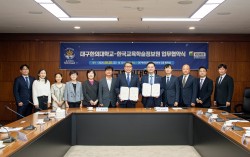 협약식을 마친 후 기념촬영하는 참석자들 대구한의대학교(총장 변창훈)는 9월 26일(금) 12시 대구한의대학교 본부 대회의실에서 한국교육학술정보원(이하 KERIS)과 '디지털교육 및 데이터 기반 고등교육 혁신 모델 발굴을 위한 업무협약'을 체결했다고 밝혔다…