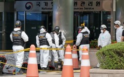 29일 오전 대전 유성구 국가정보자원관리원(국정자원) 화재 현장에서 경찰 관계자들이 불이 붙었던 무정전·전원 장치(UPS)용 리튬이온배터리 상태를 확인하고 있다. 연합뉴스 정부 "전소된 96개 시스템, 대구 이전 구축까지 4주 예상" 정부 "무자격 업…