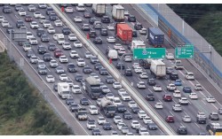 추석 연휴를 하루 앞둔 지난 2023년 27일 경기도 시흥시 서해안고속도로 조남JC 인근이 귀성길 차량으로 정체되고 있다. 뉴스1 개천절(10월 3일)부터 한글날(10월 9일)까지 이어지는 7일간의 추석 연휴에는 한가위 당일(10월 6일) 차량 정체가 절정에 이를…