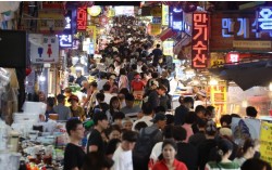 28일 부산시 부전시장에서 제수용품을 사려는 시민들로 붐비고 있다. 서울시농수산식품공사의 올해 차례상 차림 비용 조사에 따르면 전통시장(23만6723원)이 대형마트(27만4321원)보다 13.7% 저렴한 것으로 나타났다.
