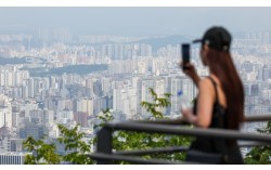 25일 서울 남산에서 관광객이 전경을 촬영하고 있다. 뉴스1 최근 서울 아파트값 상승세가 마포·성동·광진 등 ‘한강벨트’를 중심으로 가열되고 있는 가운데 이 지역 경매에서도 고가 낙찰이 속출하고 있다. 28일 지지옥션에 따르면 지난 15일 서울동부지…