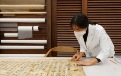 대구시 수성구 대구간송미술관 수리복원 전문 학예사가 권문해유서(예천박물관 소장)의 수리복원 과정을 진행하고 있다. [사진 대구간송미술관] 조선 중기 학자인 초간(草澗) 권문해(1534~1591)가 남긴 유서 ‘권문해유서’는 경북 예천박물관이 소장하고 있는…
