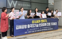 이주민 인권을 위한 부울경 공동대책위원회와 난민네트워크 등 인권시민단체가 지난 25일 부산 연제구 국가인권위원회 부산사무소 앞에서 기자회견을 열고 있다. 연합뉴스 부산 김해국제공항 출국(송환)대기실에서 5개월간 햄버거로 끼니를 때우며 난민 심사를 요구해온…