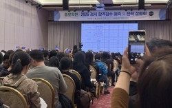 14일 서울 광진구 세종대 컨벤션센터에서 열린 대입 전략 설명회에서 학부모들이 각 대학 예상 합격 점수가 발표되자 사진을 찍고 있다. 이보람 기자 2026학년도 대학수학능력시험(수능) 다음날인 14일 오후 서울 광진구 세종대 컨벤션센터. 강당에 모인 수험…