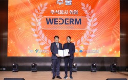 김태균 서울시 부시장(왼쪽), 권순후 위덤 부대표(오른쪽). [사진=하이서울기업협회] 주식회사 위덤이 12월 23일 코엑스 마곡에서 열린 ‘2025 하이서울기업 페스티벌’에서 수출 부문 우수기업으로 선정되어 서울특별시장 표창을 수상했다. 이번 표창…