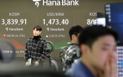 코스피가 하락 출발해 3900선을 깨고 내려온 21일, 서울 중구 하나은행 본점 딜링룸 현황판에 코스피 지수가 표시돼 있다. 연합뉴스 미국 기술주 급락 여파에 코스피가 3800선까지 밀려났다. 21일 오전 11시 20분 현재 코스피는 전일 대비 3.59%…
