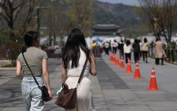 때이른 초여름 날씨를 보인 13일 서울 광화문광장에서 가벼운 옷차림의 외국인들이 이동하고 있다. 연합뉴 4월 중순인 13일 30도에 육박하는 초여름 수준의 더위가 찾아왔다. 전국적으로 맑은 날씨 속에 예년보다 높은 기온 추세가 당분간 이어질 전망이다. …
