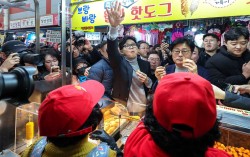 한동훈 전 국민의힘 대표가 27일 오후 대구 중구 서문시장을 찾아 붕어빵을 맛보고 있다. 뉴스1 국민의힘에서 제명된 한동훈 전 대표가 27일 대구를 방문, 장동혁 대표를 향해 “개인 생존을 위해 보수와 당을 팔아먹고 있다”고 직격했다. 한 전 대표는 이날 대…