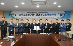 한국재료연구원(KIMS)이 현대IFC와 공동연구센터 구축 및 운영을 위한 업무협약을 체결했다. (가운데 협약서를 들고 있는 왼쪽이 한국재료연구원 최철진 원장, 오른쪽이 현대IFC 강규환 대표) 한국재료연구원(KIMS, 원장 최철진)이 4월 10일(금) K…