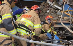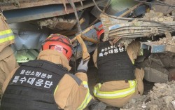 14일 오후 울산화력발전소 붕괴 현장에서 구조대원들이 마지막 매몰자를 찾기 위해 수색구조작업을 하고 있다. 사진 소방청 울산화력발전소 붕괴 사고로 매몰됐던 노동자 가운데 마지막 실종자의 위치가 사고 발생 8일 만에 확인됐다. 소방 당국은 14일 오후 8시 4…