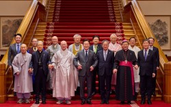이재명 대통령이 12일 청와대에서 열린 종교 지도자 초청 오찬간담회에서 참석자들과 기념촬영을 하고 있다. 앞줄 왼쪽부터 천태종 총무원장 덕수 스님, 이용훈 한국천주교주교회의 의장, 조계종 총무원장 진우 스님, 이 대통령, 김정석 한국교회총연합 대표회장, 정순택 천주교서…