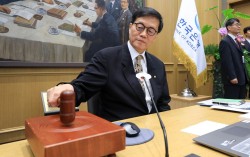 한국은행이 기준금리를 7번 연이어 동결했다. 10일 한은 금융통화위원회는 통화정책 방향결정 회의를 열고 기준금리를 연 2.50%로 유지한다고 밝혔다. 이창용 한국은행 총재가 10일 서울 중구 한국은행 본관에서 열린 금융통화위원회 본회의에서 의사봉을 두드리고 있다.…