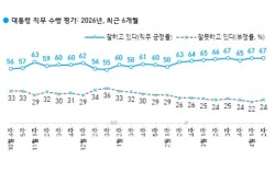 한국갤럽 이재명 대통령의 직무 수행 긍정 평가가 60%대 후반을 기록하며 고공행진을 이어가고 있다는 4월 2주차 여론조사 결과가 나왔다. 한국갤럽이 지난 4월 7~9일 전국 만 18세 이상 1002명을 대상으로 조사한 결과 이 대통령이 직무를 잘 수행하고 있…