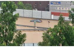 광주지역에 시간당 86㎜ 비가 쏟아진 17일 오후 광주 북구 호남고속도로 동광주IC(광주 각화동 방면 출구)가 빗물에 침수돼있다. 뉴시스 광주·전남 지역에 시간당 최대 86㎜의 강한 비가 쏟아진 17일 오후 광주 북구 호남고속도로가 침수돼 동광주IC∼서광주IC 양…