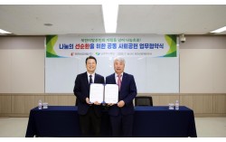 함흥규 한전산업개발 사장(오른쪽)과 이주태 남북하나재단 이사장 직무대행(왼쪽)이 16일 진행된 ‘북한이탈주민 정착지원 및 공동 나눔 실천을 위한 업무협약식’에서 기념 촬영에 응하고 있다. 한전산업개발(사장 함흥규, 이하 한전산업)은 7월 16일(수) 한전…
