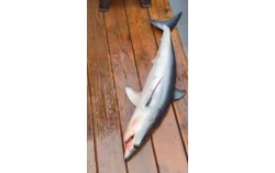 17일 오전 9시 55분께 강원 고성군 현내면 대진항 동쪽 약 3.7㎞(2해리) 해상에서 한 낚시객의 낚싯대에 상어가 건져 올라왔다. 연합뉴스 17일 오전 9시 55분께 강원도 고성군 현내면 대진항 동쪽 약 3.7㎞ 해상에서 낚시를 하던 한 시민이 청상아…