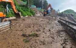 14일 경북 울릉군 현포리 노인봉 도로 구간에서 산사태가 발생 교통이 통제되고 있다. 사진 울릉군=뉴스1 산림청은 16일 오후 2시 30분을 기해 서울, 인천, 경기, 부산, 대구, 광주, 대전, 울산, 세종, 충북, 충남, 전북, 전남, 경북, 경남, 제주 등…