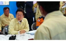 이재명 대통령이 지난 7월 21일 경남 산청군 산청읍행정복지센터 주차장에 마련된 호우 피해 통합지원본부를 찾아 정영철 산청군 부군수(오른쪽 뒷모습)로부터 피해 상황 브리핑을 받고 있다. 사진 대통령실사진기자단 행정안전부가 지난 7월 극한 호우 때 ‘대통령…