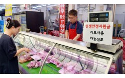 10일 충북 증평군 장뜰시장 안에 있는 정육점에서 손님이 고기를 고르고 있다. 김성태 객원기자 “하루 5000명 폭주”…10만원에 줄 선 주민들 지난 9일 충북 증평군 군청 2층 대회의실. ‘증평군 민생안정지원금’ 신청을 위해 온 주민들이 마을별로 나뉜 지…