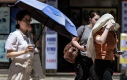 폭염이 이어진 10일 서울 중구 을지로3가역 인근에서 한 시민이 겉옷으로 햇빛을 가린 채 이동하고 있다. 뉴시스 수도권을 중심으로 최고 36도에 이르는 불볕더위가 주말까지 이어질 것으로 예상된다. 이후 일요일인 13일을 전후로 극한폭염을 불러온 두 개의 …