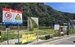 “매년 물에 빠져 숨지는 사고가 발생하는데…, 불과 한 달 전에도 다슬기를 잡던 사람이 물살에 휩쓸려 숨졌어요. 여기 사는 주민들은 아예 물에 안 들어가요” 지난 9일 오후 물놀이를 하다 20대 4명이 숨진 충남 금산군 제원면 기러기공원에 수영을 금지하는 안내판이 설치…