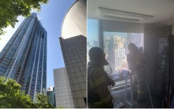 서울 강남구 도곡동 타워팰리스 G동에서 2023년 발생했던 화재는 에어컨 실외기실과 인근 세대 유리창 일부를 태웠다. [사진 강남소방서] 폭염·열대야가 이어지는 상황에서 서울시가 냉방기기 화재 예방에 주의를 당부했다. 에어컨·선풍기 등 전기 사용량이 최고…