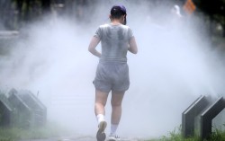 지난 3일 대구 중구 김광석길 입구 산책로에서 달리기하던 한 시민이 쿨링포그 사이를 걸으며 숨을 고르고 있다. 뉴스1 평소 숨가쁠 정도의 신체 활동을 실천하는 성인이 4명 중 1명에 불과한 것으로 나타났다. 특히 대도시 거주자, 여성 등의 신체활동 실천이…