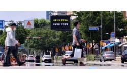 9일 서울 시내 도로 전광판에 '서울지역 폭염경보' 문구가 표출되고 있다. 뉴스1 7월 상순으로는 이례적인 폭염이 이틀째 수도권과 서쪽 지역을 강타하고 있다. 이날 서울 낮 최고기온은 36도를 기록했다. 전북 정읍은 37.8도까지 오르며 7월 낮 기온 역…