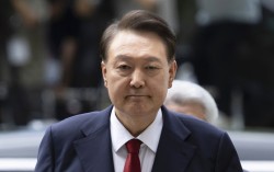 12·3 비상계엄과 관련해 특검의 수사를 받는 윤석열 전 대통령이 9일 서울 서초구 서울중앙지법에서 열린 영장실질심사에 출석하고 있다.연합뉴스 [속보] 尹 구속영장심사 휴정…저녁식사 후 오후 8시 재개할 듯