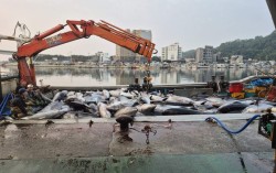 8일 오전 경북 영덕군 앞바다에서 1300여 마리의 대형 참다랑어가 잡혀 강구수협으로 배정됐다. [사진 영덕군] 경북 영덕 앞바다에서 무게 100㎏이 넘는 대형 참다랑어 1300여 마리가 무더기로 잡혔다. 8일 영덕군·강구수협 등에 따르면 이날 오전…