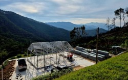 7일 오후 경남 산청군 시천면 중태마을에서 산불 피해 주택 복구 작업이 이뤄지고 있다. 안대훈 기자 “원래 원목 집이었는데, 지금 짓는 집 외관엔 나무를 항개도(하나도) 안 쓸끼다. 돌하고 기와를 쓰고, 외장도 불연재(不燃材)로 할끼다. 오로지 불에 안…