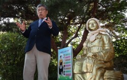 정근식 서울시교육감이 지난해 10월 서울의 한 고등학교 내 평화의 소녀상을 방문하고 있다. 이날 위안부법폐지국민행동 등 우익단체는 평화의 소녀상이 설치된 학교 앞에서 철거를 요구하는 집회를 예고했으나 실제 이뤄지진 않았다. 뉴스1 학교 인근에서 벌어지는 혐오·차…