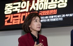 나경원 국민의힘 의원이 지난해 3월 25일 서울 여의도 국회 의원회관에서 열린 중국의 서해공정 긴급 대응 토론회에서 국민의례를 하고 있다. 뉴스1 대한민국 국민에게 투표권을 주지 않는 나라 출신의 외국인에게 지방선거 때 투표권을 주지 말아야 한다고 생각하는 국민이…