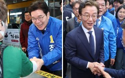 더불어민주당은 9일 6·3 지방선거 서울시장 후보로 정원오 전 성동구청장을, 부산시장 후보로 전재수 의원을 확정했다. 정 후보가 이날 서울 동원전통시장을 방문해 상인과 인사하고 있다(왼쪽 사진). 전 후보가 지난 2일 부산 수정시장에서 시민들과 인사하고 있다. 송봉근 …