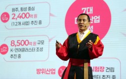 3월 28일 강원 강릉시 포남동 강릉아이스아레나에서 열린 강원도정 보고회 강릉권 행사에 김진태 도지사가 관찰사 복장으로 도정 보고를 하고 있다. 연합뉴스 “당에서 하루라도 빨리 예비후보 등록을 하라고 하지만 지금 상황에서 시장직을 왜 던집니까” 6·3 지방선…