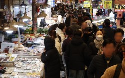 설 연휴를 일주일 앞둔 8일 부산 부산진구 부전시장을 찾은 시민들이 제수용품과 선물 등을 구입하고 있다. 송봉근 객원기자 올해 설 차례상 차림에 필요한 주요 성수품 구매 비용이 전년보다 4% 이상 오른 것으로 나타났다. 서울시농수산식품공사는 9일 서…