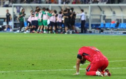 지난해 7월 동아시안컵에서 일본에 0-1로 패한 뒤 그라운드에 주저앉아 아쉬워하는 한국 축구대표팀 수비수 박진섭. 반드시 이겨야 우승이 가능했던 한국은 안방에서 일본에 우승을 내줬다. 한일전 ‘3연속 무득점 패배’ 굴욕도 당했다. 연합뉴스 이이지마 사키(飯島早紀)…