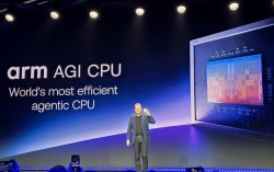 24일(현지시간) 미국 샌프란시스코 포트 메이슨 센터에서 열린 ‘Arm 에브리웨어’에서 르네 하스 Arm 최고경영자(CEO)가 ‘Arm AGI CPU’를 공개하고 있다. 이가람 기자 “35년이 넘는 회사 역사상 처음으로 반도체 칩 제조 사업을 시작한다.…