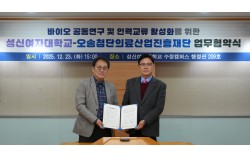 성신여자대학교 이성근 총장(왼쪽)과 오송첨단의류산업진흥재단 이명수 이사장(오른쪽)이 기념 촬영을 하고 있다. 성신여자대학교(총장 이성근)는 23일, 서울시 성북구에 소재한 수정캠퍼스에서 오송첨단의료산업진흥재단과 첨단 의약품 개발 분야의 공동 연구 및 전문…