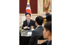 중국을 국빈 방문 중인 이재명 대통령이 7일 상하이의 한 호텔에서 열린 기자단 오찬간담회에서 질문을 듣고 있다. 이 대통령은 이 자리에서 시 주석이 한·중 정상회담에서 한 ‘역사의 올바른 편’ 발언에 대해 “공자님 말씀으로 들었다. ‘착하게 잘 살자’ 그런 의미로 이해…