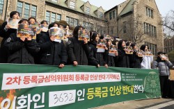 이화여자대학교 제58대 총학생회 학생들이 지난 1월 26일 서울 서대문구 이화여자대학교 본관 앞에서 열린 등록금 인상 반대 기자회견을 갖고 있다. 뉴스1 지난해 교육물가 상승폭이 15년 만에 최대치를 기록했다. 그간 정부 기조에 따라 십여년 넘게 동결됐던…