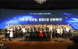 가천대가 16일 대학 컨벤션센터에서 가천 ‘AI·컴퓨팅연구원 개원식’을 열고 단체 기념사진을 촬영하고 있다. 가천대학교(총장 이길여)가 인공지능 분야 글로벌 경쟁력 강화를 위해 16일 가천컨벤션센터에서 ‘가천 AI·컴퓨팅연구원(Gachon Institut…