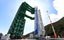 오는 11월 발사를 앞둔 누리호 4차 발사체가 26일 WDR(웻드레스 리허설)을 진행 중에 있다. 사진 우주항공청 16일 오후 KTX 순천역에서 차로 한 시간 반을 달려 도착한 전남 고흥군 나로우주센터. 조립동에서 발사대로 이어진 이송로를 5분가량 오르자, 오는 …