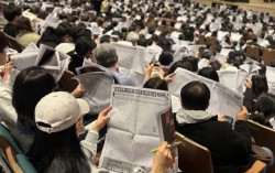 지난 7일 서울 종로구 성균관대 새천년홀에서 종로학원이 주최한 2026학년도 정시 전략 설명회에 참석한 수험생과 학부모들이 학원 측에서 제공한 자료를 펼쳐보고 있다. 이보람 기자 2026학년도 대입 수시모집에서 서울대·연세대·고려대에서 총 4667명의 추…