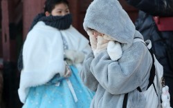 서울에 한파주의보가 내려진 25일 서울 종로구 경복궁을 찾은 외국인 관광객들이 강추위에 목도리 등 방한용품을 두른채 이동하고 있다. [뉴스1] 크리스마스(25일)부터 시작된 한파가 26일엔 체감온도 –19도까지 떨어질 것으로 예상되면서 서울시가 비상에…