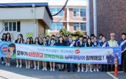 지난 9월 광주 남구 봉선중 앞에서 열린 '신학기 학교폭력 예방 및 근절을 위한 등굣길 캠페인'에서 참가자들이 기념사진을 찍고 있다. 사진은 기사와 직접 관계 없음. 사진 광주 남부경찰서 학교폭력(학폭)을 경험한 청소년 10명 중 3명이 부모에게 폭력을 행사한 적…
