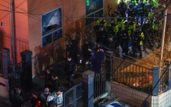 서울서부지방법원에서 윤석열 지지자들 난동 막는 경찰기동대. 연합뉴스 지난 1월 윤석열 전 대통령 구속 당시 서울서부지법 난동 사태에 적극적으로 가담한 이른바 ‘녹색 점퍼남’이 1심에서 징역 3년 6개월을 선고받았다. 19일 서울서부지법 형사5단독 김형석 부장…