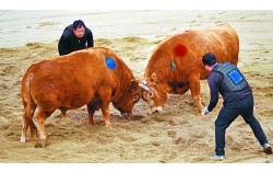 2021년 3월 21일 오후 경북 청도군 화양읍 청도소싸움경기장에서 열린 '2021년 청도소싸움경기'에서 출전한 싸움소들이 격돌하고 있다. 연합뉴스 동물권 단체들이 경북 청도군에서 열리는 소싸움 대회를 전통문화가 아닌 동물학대로 규정하며 폐지를 촉구했다. 동…