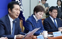 정청래 더불어민주당 대표(왼쪽)가 5일 국회에서 열린 최고위원회의에서 발언하고 있다. 왼쪽 둘째부터 이언주·서삼석 최고위원. 정 대표는 이날 지방선거 공천 감시 역할을 하는 클린선거 암행어사단을 발족했다. 관련기사강선우 1억 의혹 김경 출국했는데…경찰은 몰랐다김병기 “…